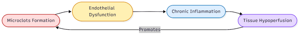 - Microclots and impaired microcirculation: Multiple studies have described fibrin amyloid microclots and micro‑thrombosis in acute COVID infection and long COVID, which may obstruct capillaries and reduce oxygen delivery to tissues, causing hypoperfusion.